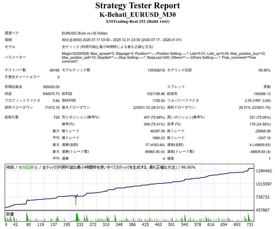 今回はK-Behati_EURUSD_M30を検証して行きたいと思います。