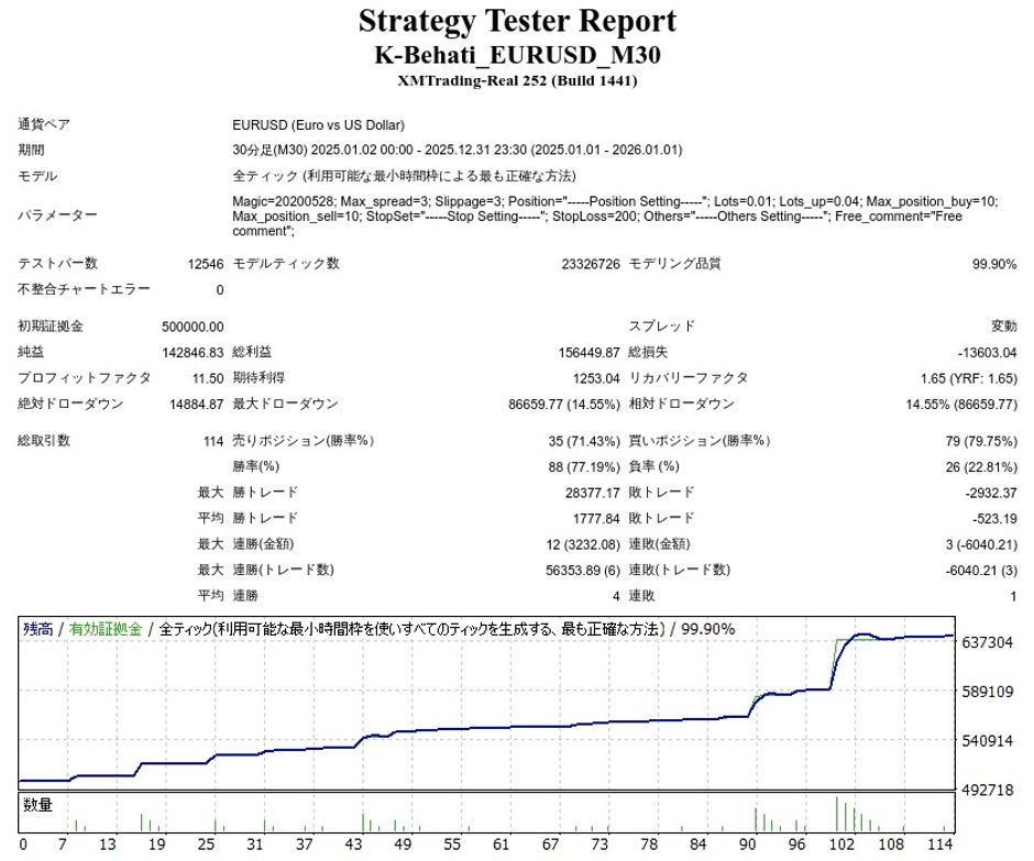K-Behati_EURUSD_M30の結果は、全ての期間でプラスでした。