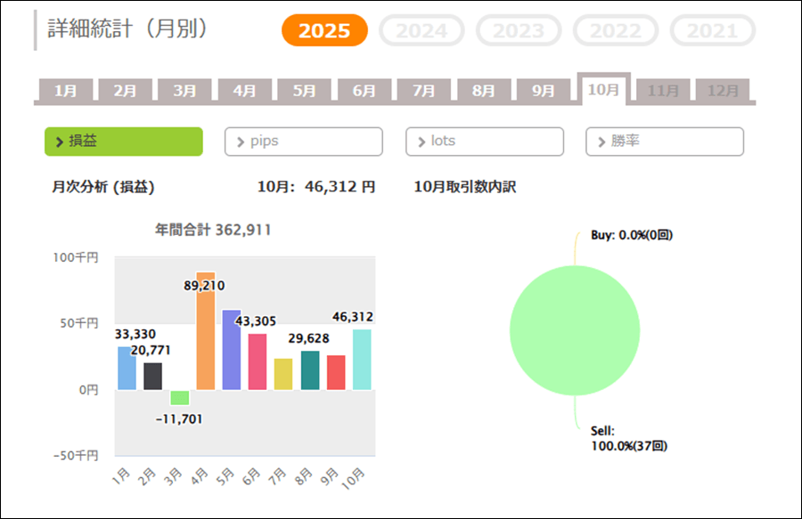2022年~2025年の月間成績をまとめると+14.1万円の成績となりました。