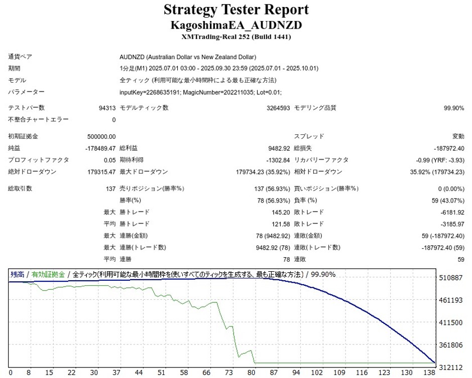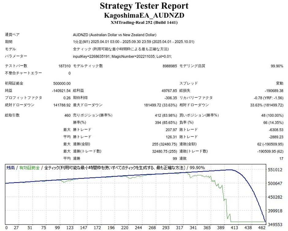 鹿児島EA<AUDNZD版>はナンピン・マーチンゲールタイプのEAですが、成績はどうなのでしょうか。