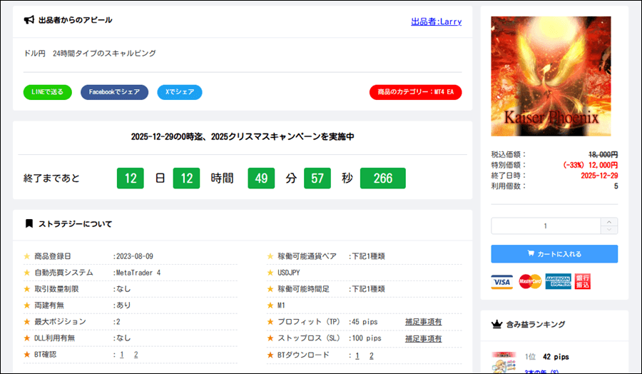 Kaiser PhoenixRは2つのロジックからなるドル円EAですが、成績はどうなのでしょうか。