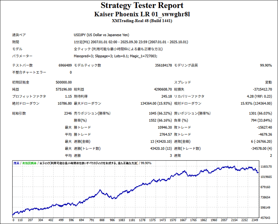 Kaiser PhoenixRは、2つのロジックがあり、ロジック1、ロジック2どちらも長期・リリース後はプラスでした。