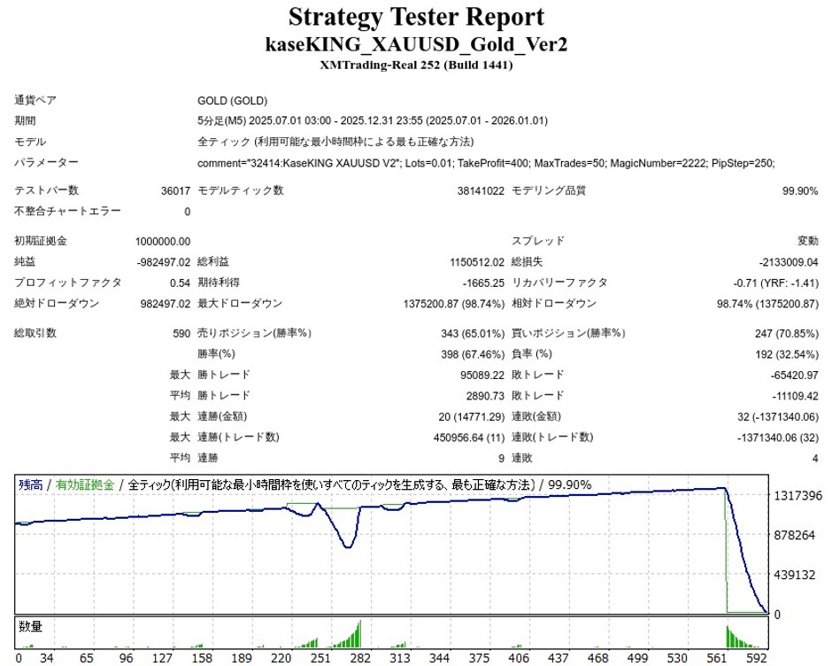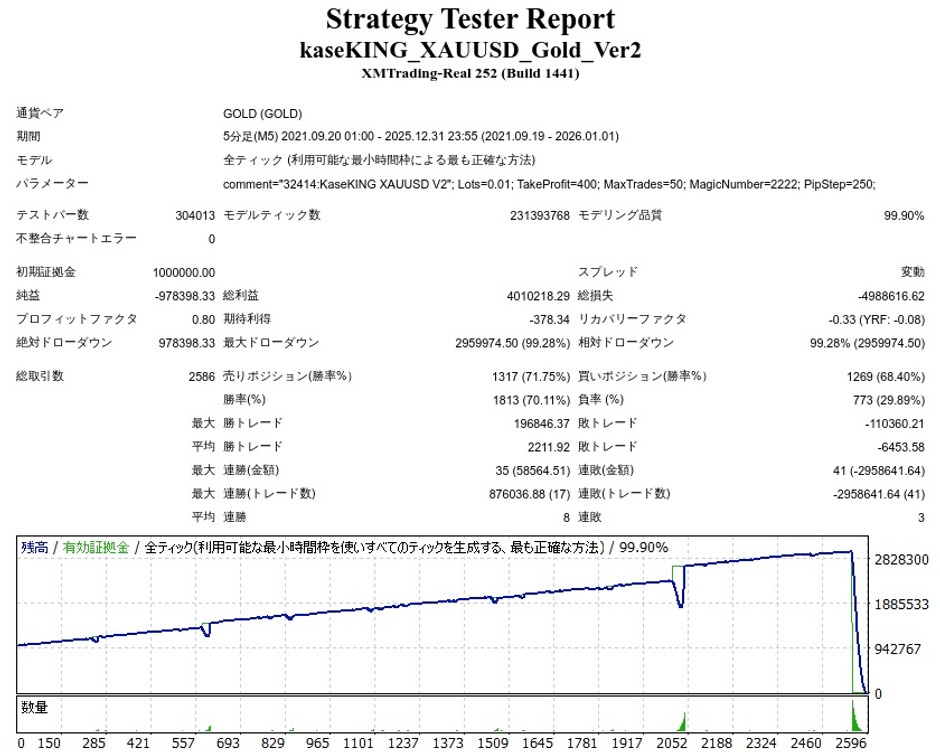 GogoJungleの稼KING XAUUSD Gold Ver.2のバックテストをしてきました。