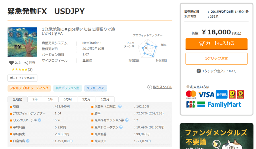 緊急発動FX USDJPYの詳細を確認する1分足が急に●pips動いた時に順張りで追いかけるEA | GogoJungle