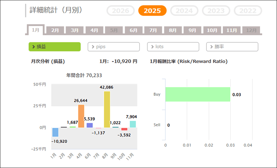 月次分析を見ると、2025年はトータルでプラスです。