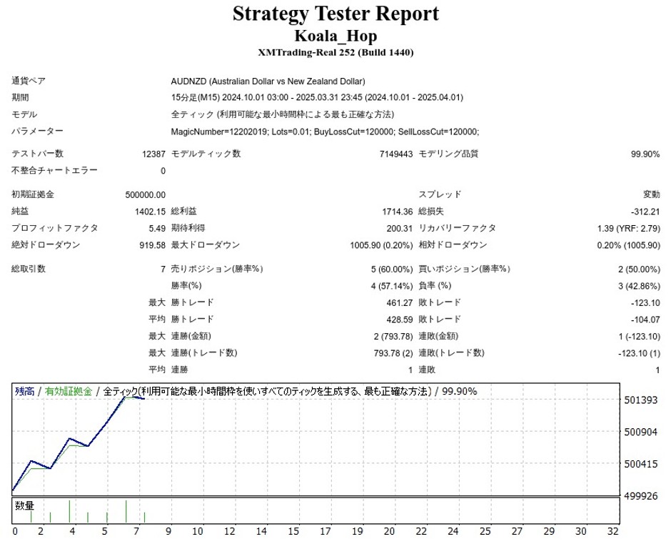 GogoJungleのコアラ・ホップEAのバックテストをしてきました。過去1年、過去6ヶ月、過去3ヶ月はマイナス、リリース後はプラスでした。