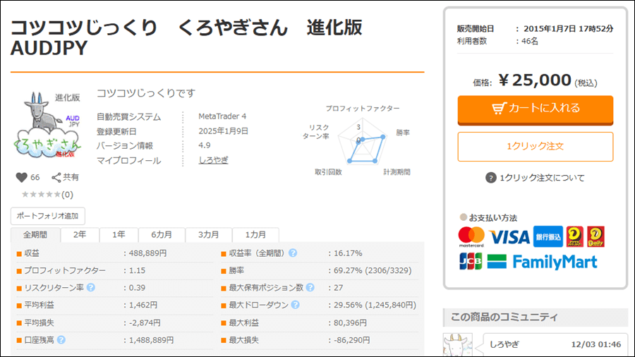 コツコツじっくり くろやぎさん 進化版 AUDJPYの詳細を確認する