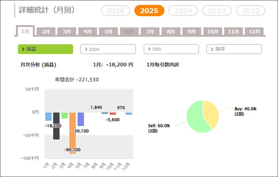 2021年はマイナスの月も損失は小さく、トータルではプラスです。