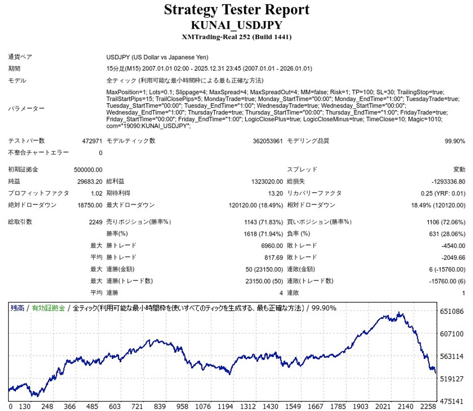 では、KUNAI_USDJPYを詳しく見て行きましょう。