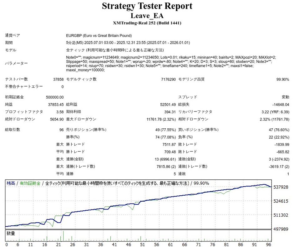 | 初期証拠金 | 500,000円 | 勝率 | 77.08% |