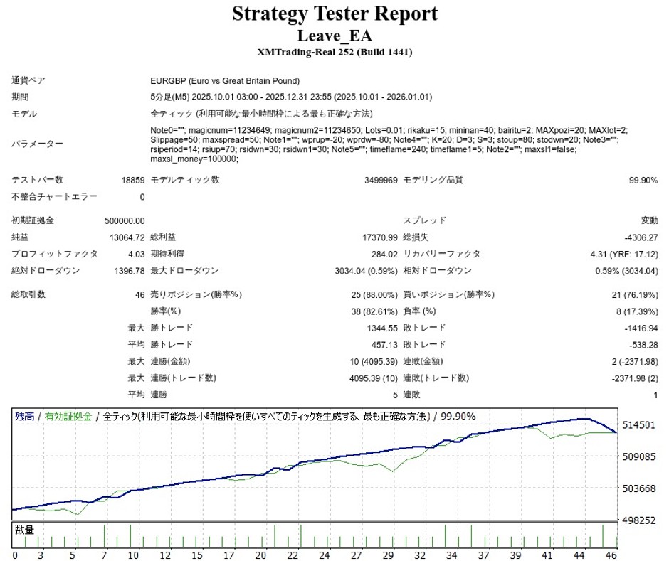 Leave_EAのリリース後のバックテスト結果(≒フォワード結果)は以下のようになりました。
