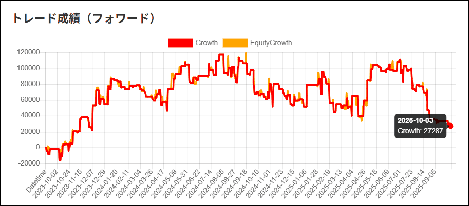 「バックテスト結果とフォワードテスト結果が違いないか」、「過去データに最適化し過ぎていないか」など参考にしてください。
