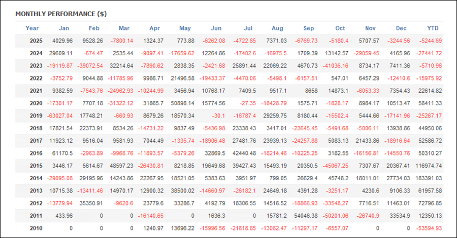 月次分析を見ると、2025年はトータルでプラスです。