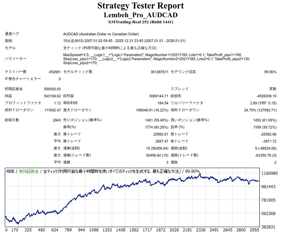 Lembeh_Pro_AUDCAD_M15はAUDCAD専用EAですが、成績はどうなのでしょうか。