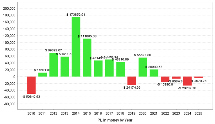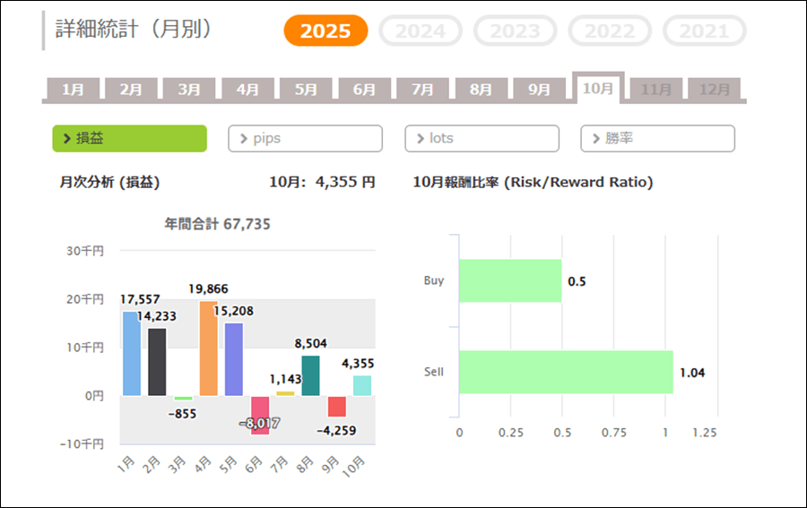 月次分析を見ると、2025年は今のところトータルでプラスです。