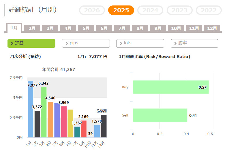 2022年~2025年の月間成績をまとめると合計で-5.2万円の成績となりました。