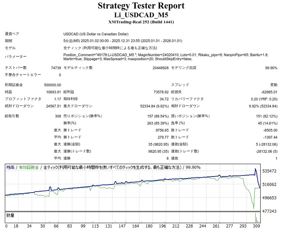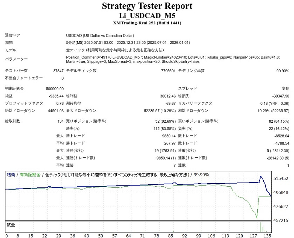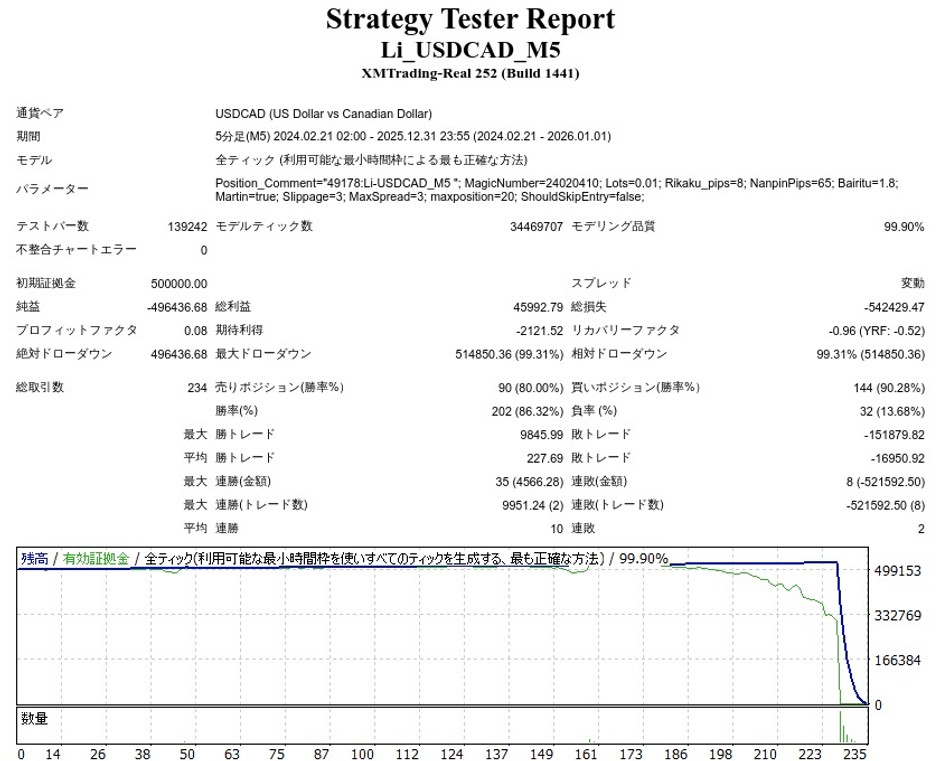 Li_USDCAD_M5はナンピンEAですが、成績はどうなのでしょうか。