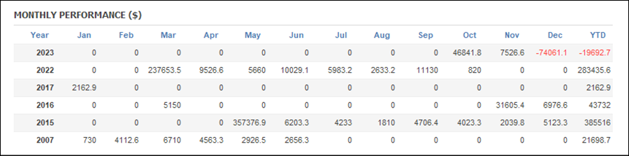 2022年は取引のない月もありますが、そのほかはプラスです。