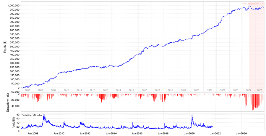 LOTO_USDJPY_EB01をQuantAnalyzerで見てみると、2014年あたりに停滞期間があります。