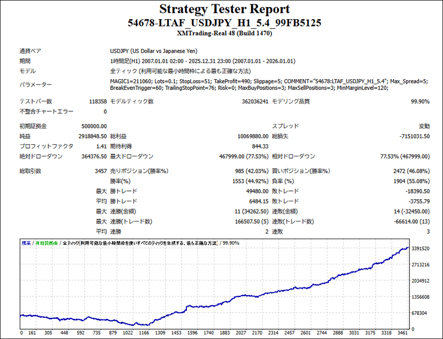 LTAF_USDJPY_H1はUSDJPY専用のEAですが、成績はどうなのでしょうか。