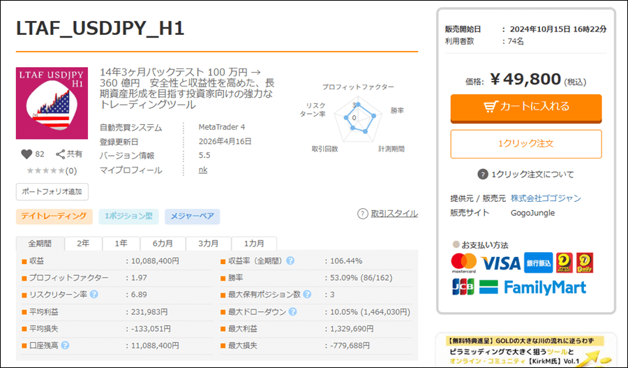 GogoJungleのLTAF_USDJPY_H1のバックテストをしてきました。