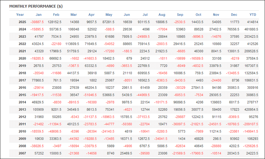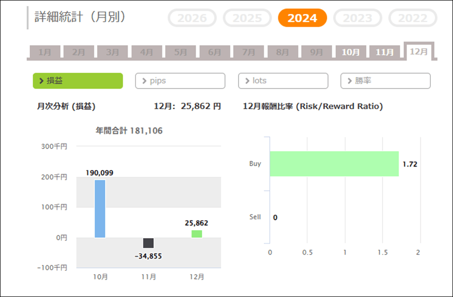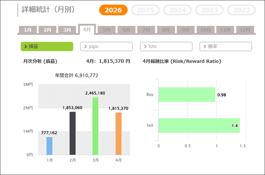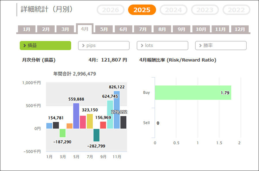 月次分析を見ると、2026年は今のところトータルでプラス。2025年、2024年もトータルでプラスです。