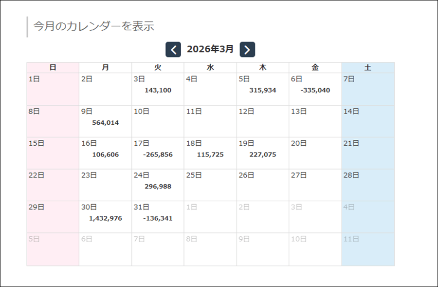 月次分析(月間の損益)