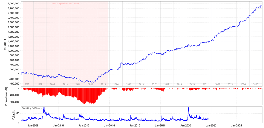 LTAF_USDJPY_H1をQuantAnalyzerで見てみると、前半は停滞していましたが、2012年以降は順調な成績です。