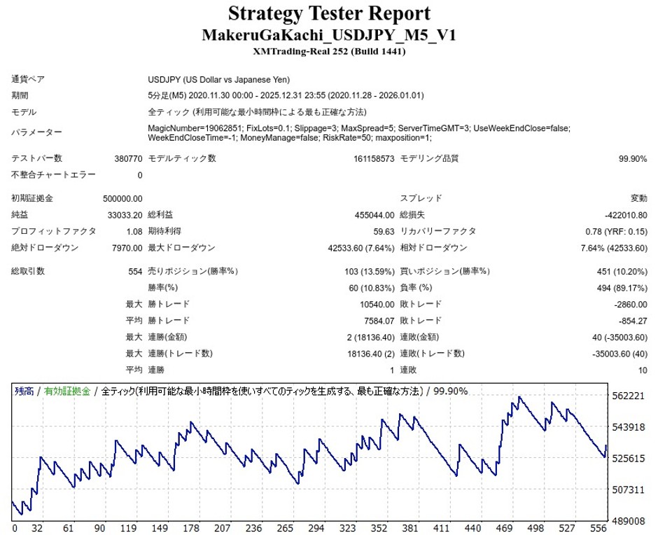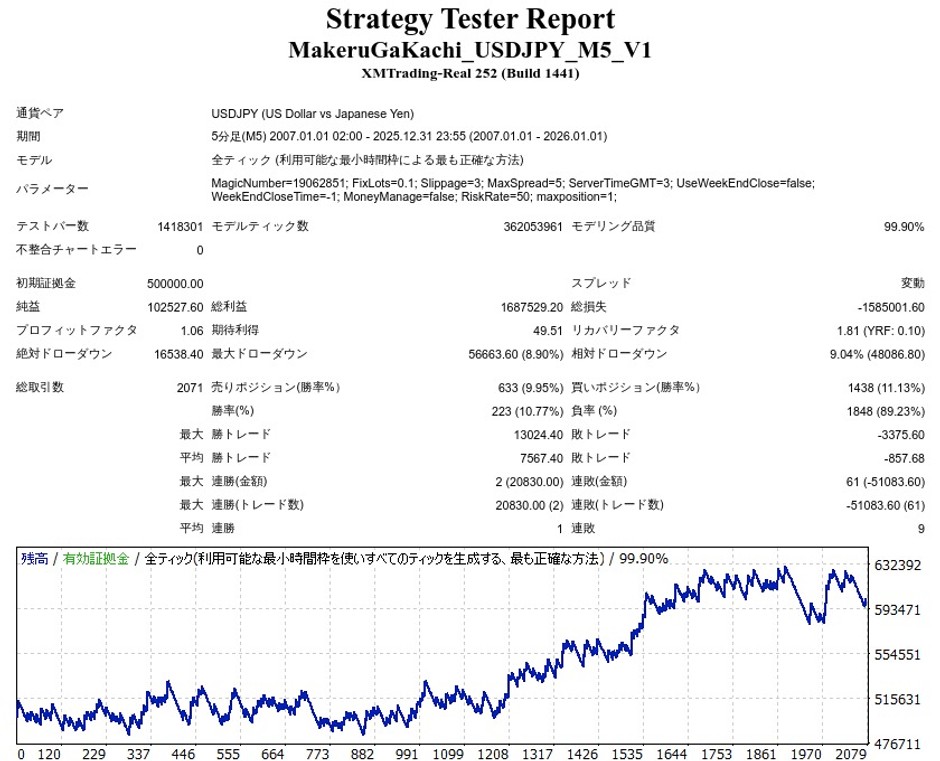 何事も負けるが勝ち [ドル円版]のEA検証結果