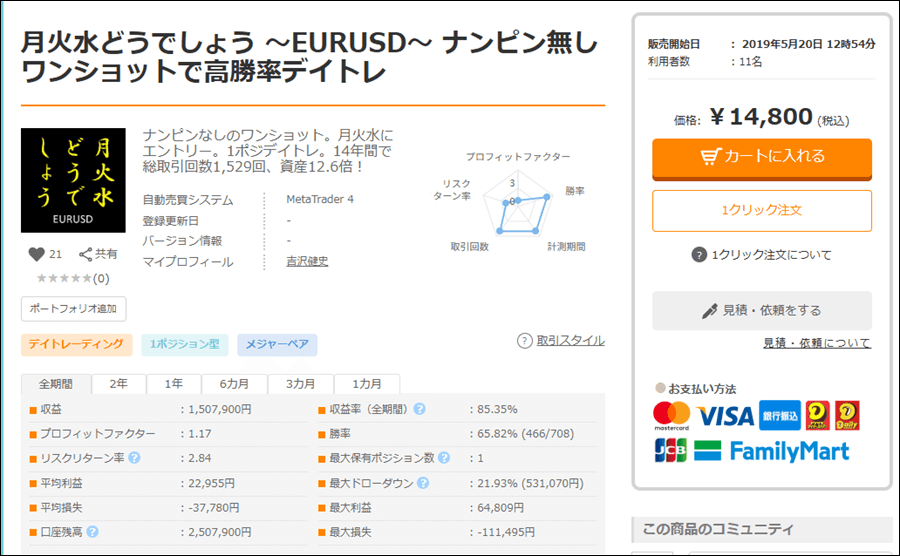 月火水どうでしょう ~EURUSD~は1ポジデイトレEAのようですが、成績はどうなのでしょうか。