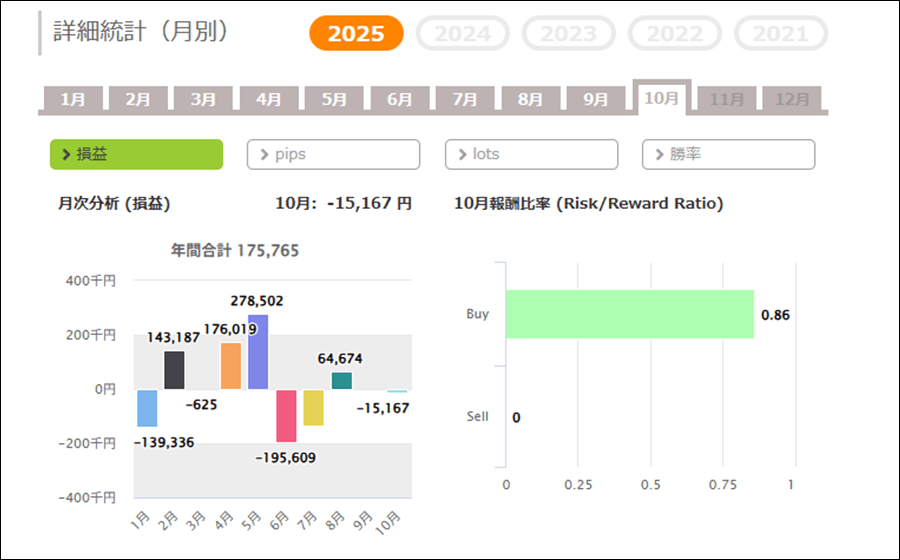 最大ドローダウン 176,318円(33.00%) リスクリターン率 0.53