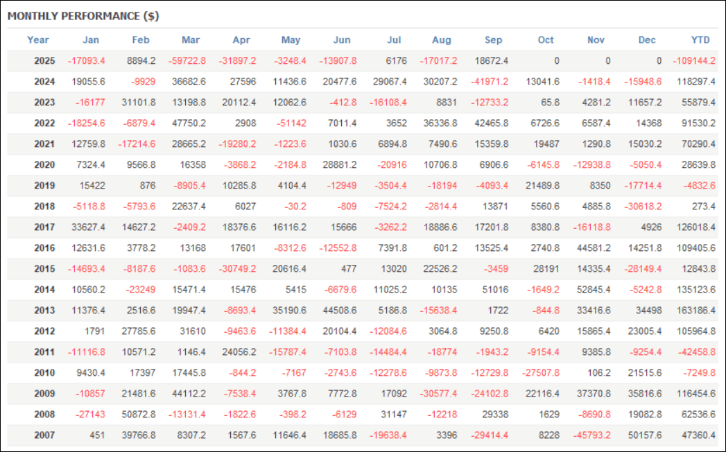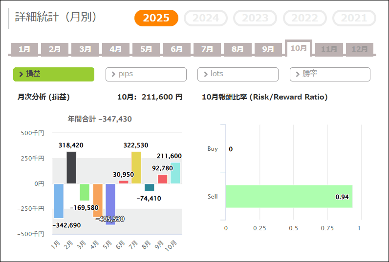 月次分析を見ると、2025年はマイナスが多めで、2024年は9月以外プラスの成績です。