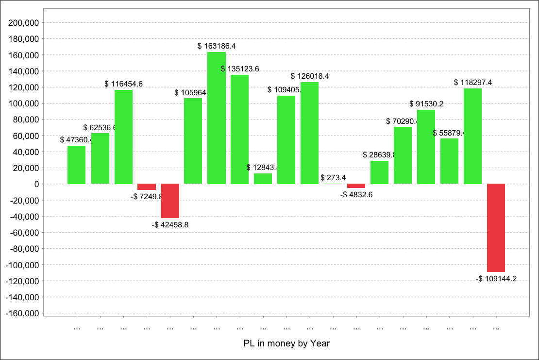 年次の成績を見ると、2010年、2011年、2019年、2025年以外はプラスです。