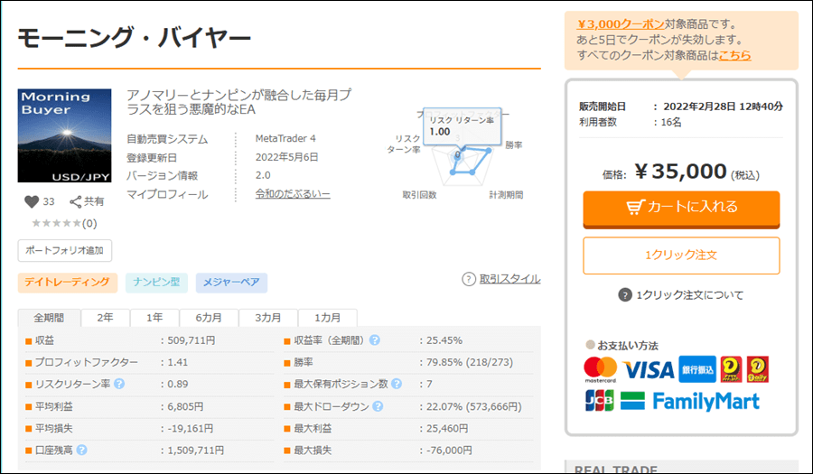 モーニング・バイヤーのリリース後のバックテスト結果(≒フォワード結果)は以下のようになりました。