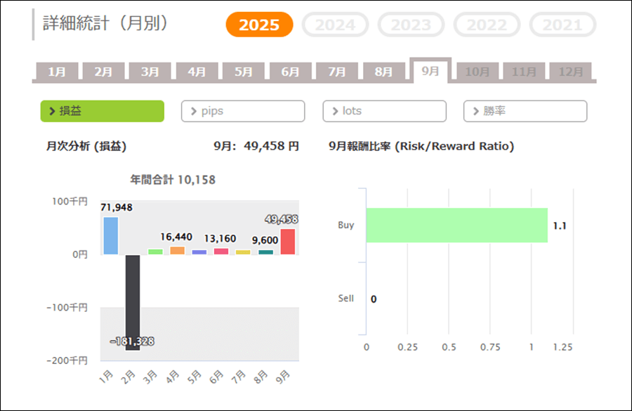 月次分析を見ると、2025年は今のところトータルでマイナスです。
