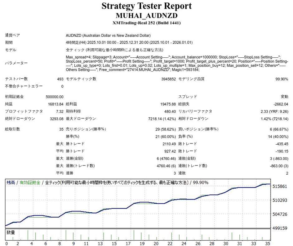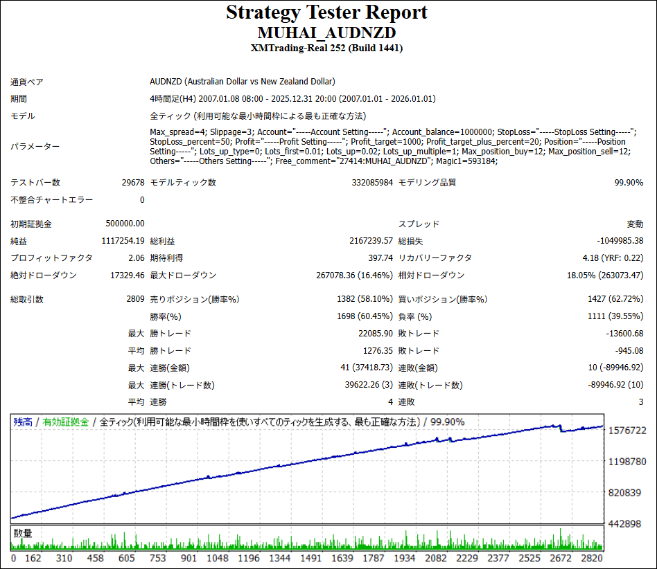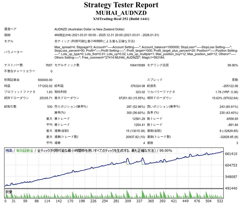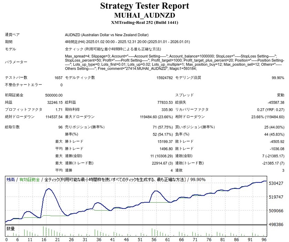 MUHAI_AUDNZDのリリース後のバックテスト結果(≒フォワード結果)は以下のようになりました。