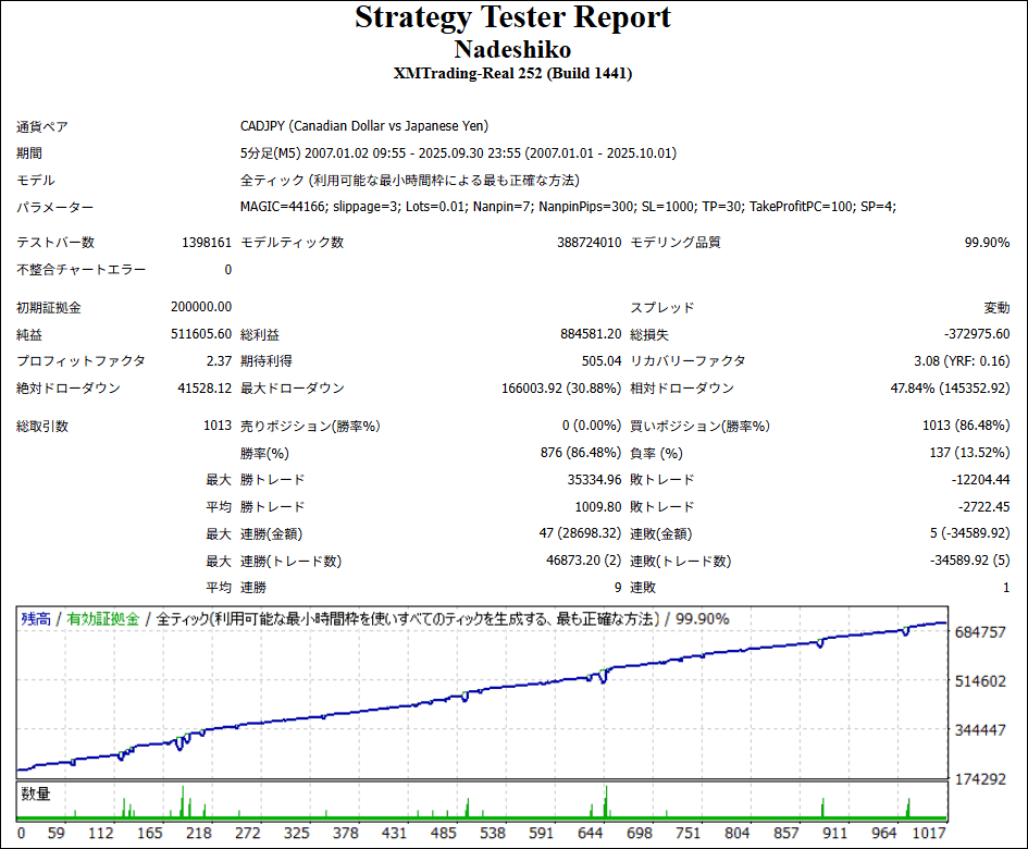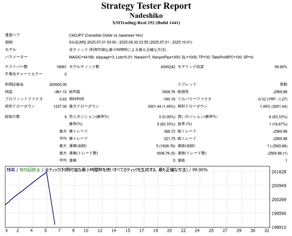 NadeshikoはナンピンEAですが、成績はどうなのでしょうか。