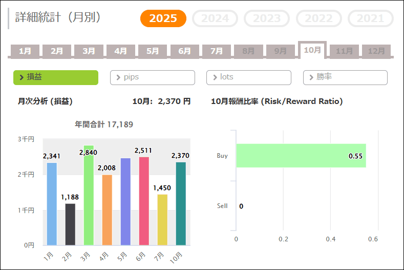 毎月1日~末日までの成績をまとめるとこのような成績となります。