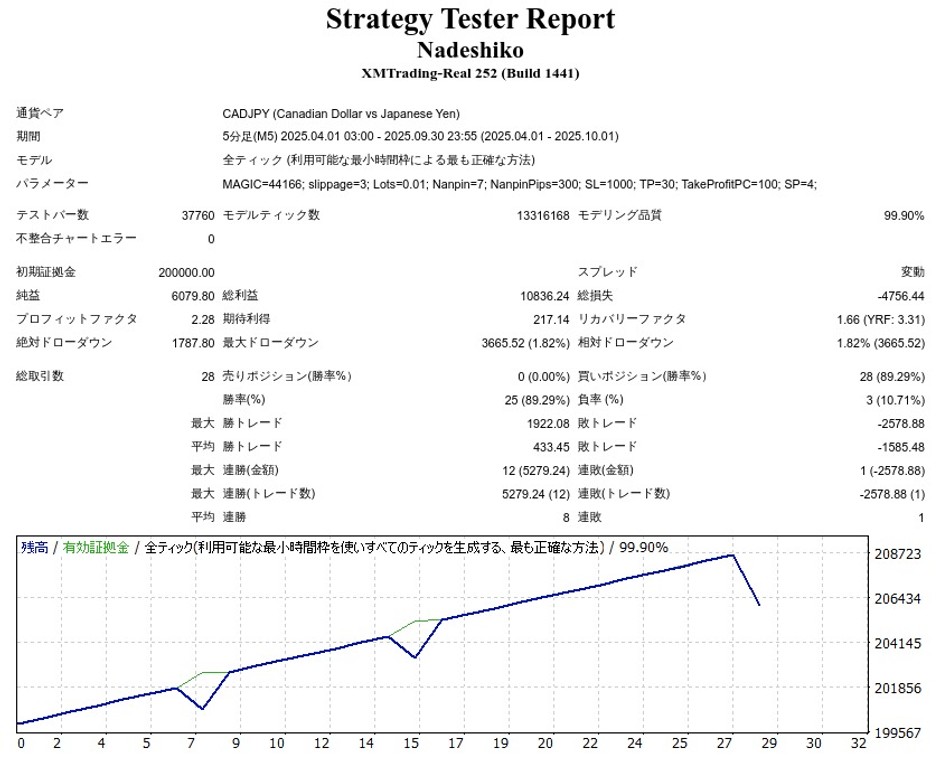 | 初期証拠金 | 200,000円 | 勝率 | 89.29% |