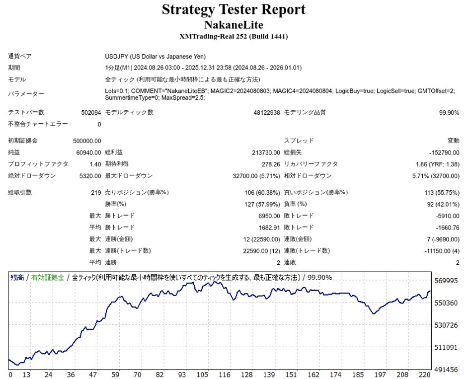 | 初期証拠金 | 500,000円 | 勝率 | 57.99% |