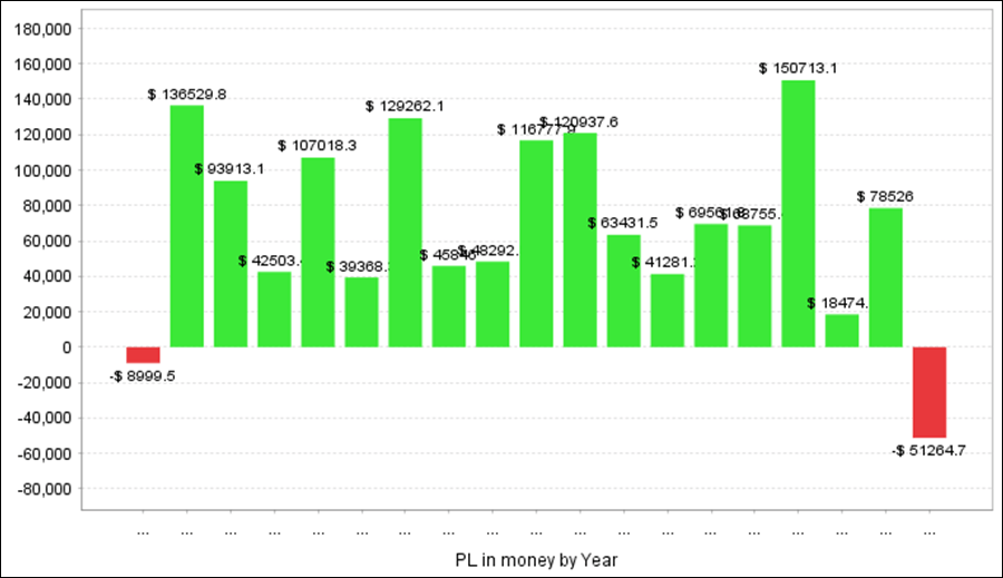 QuantAnalyzerを使った年次・月次の成績となります。