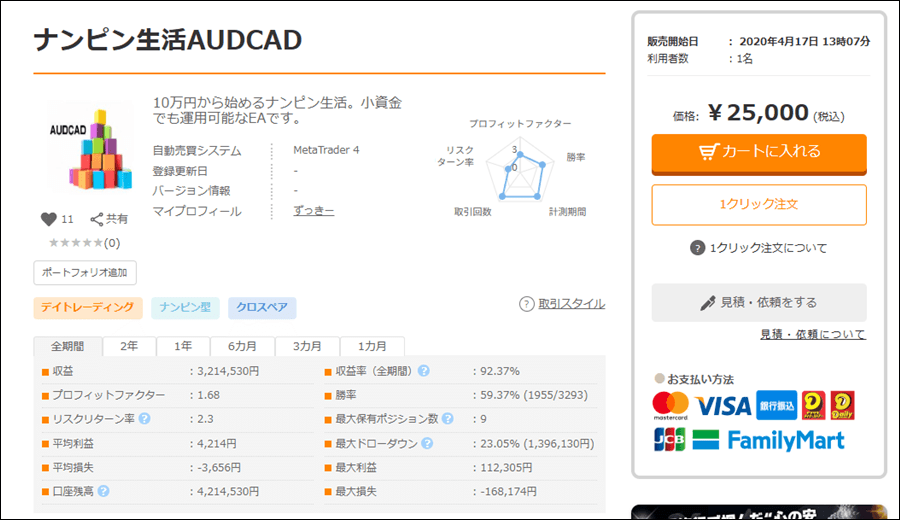 ナンピン生活AUDCADはナンピンEAですが、成績はどうなのでしょうか。