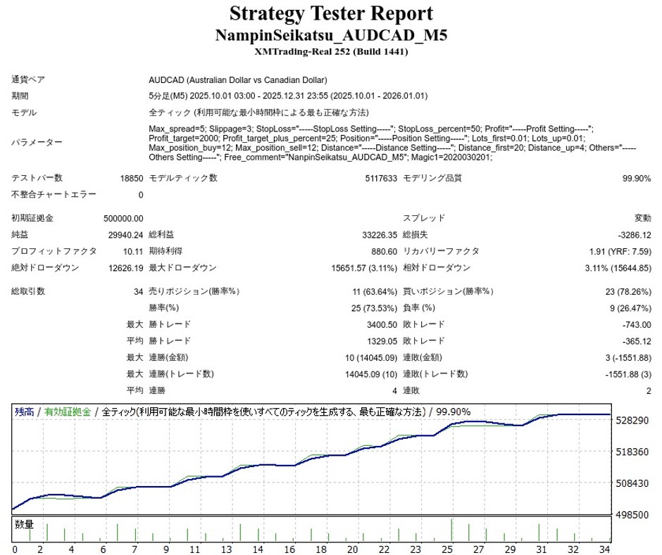 ナンピン生活AUDCADのEA検証結果
