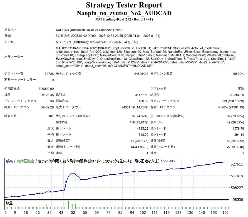 ナンピンの術 其の二 AUDCAD M5はナンピンEAですが、成績はどうなのでしょうか。
