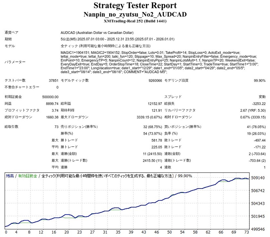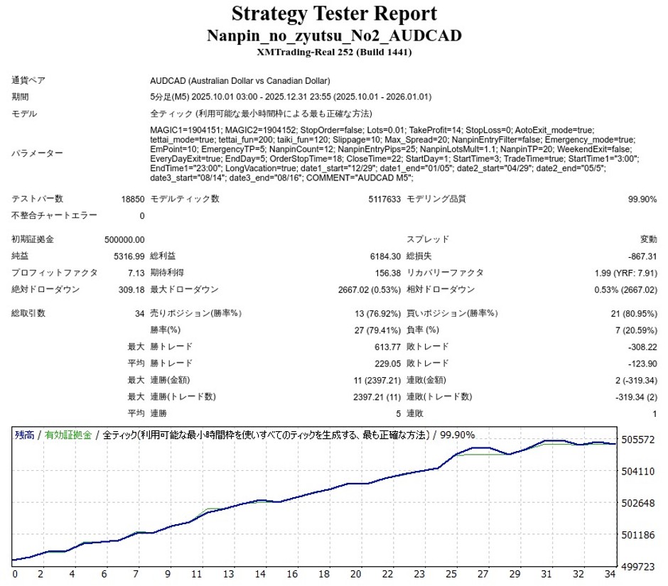 ナンピンの術 其の二 AUDCAD M5のEA検証結果