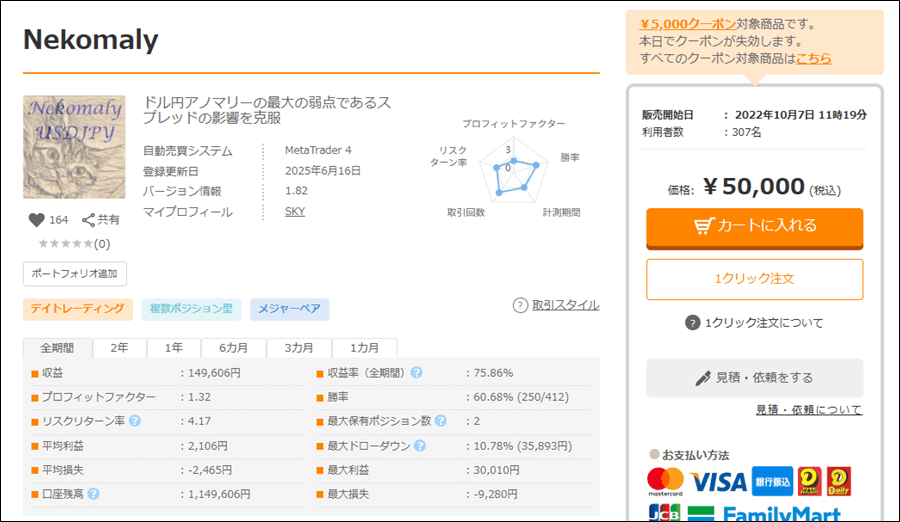 Nekomalyはドル円アノマリーを利用したEAですが成績はどうなのでしょうか。