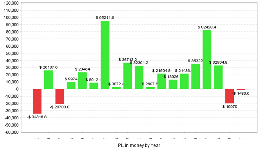 Nekomalyは過去18年で+36.8万円の収益でした。ドローダウンが低く全体的に安定した成績になっています。