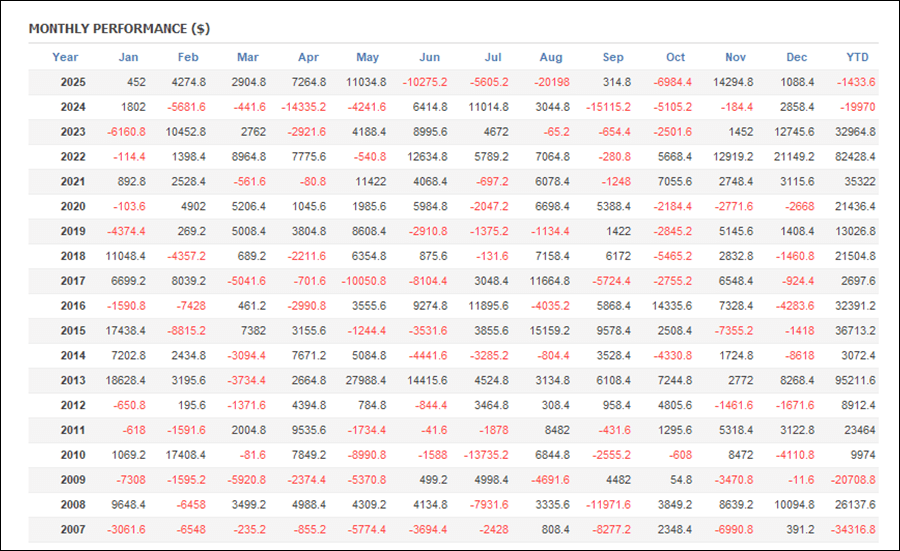 月次分析を見ると、2025年は年トータルでプラスです。