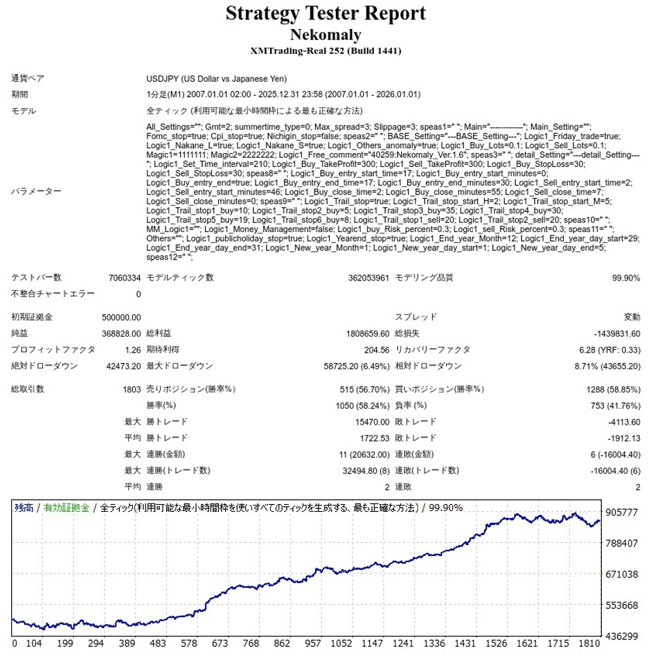 | 初期証拠金 | 500,000円 | 勝率 | 58.24% |