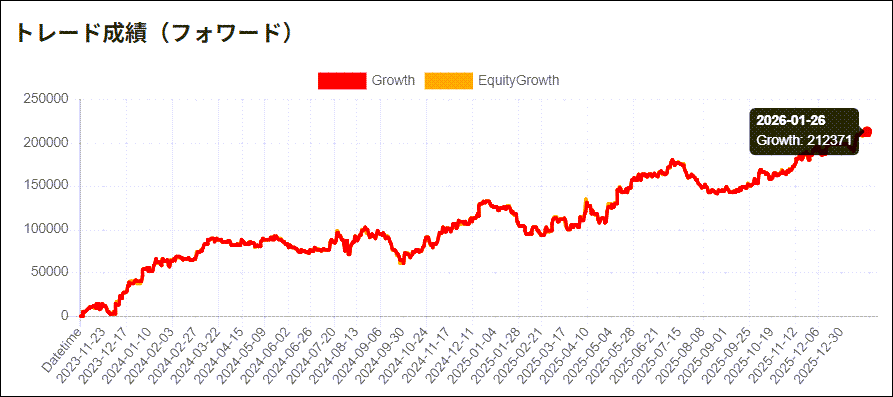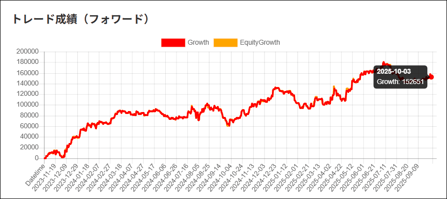 「バックテスト結果とフォワードテスト結果が違いないか」、「過去データに最適化し過ぎていないか」など参考にしてください。